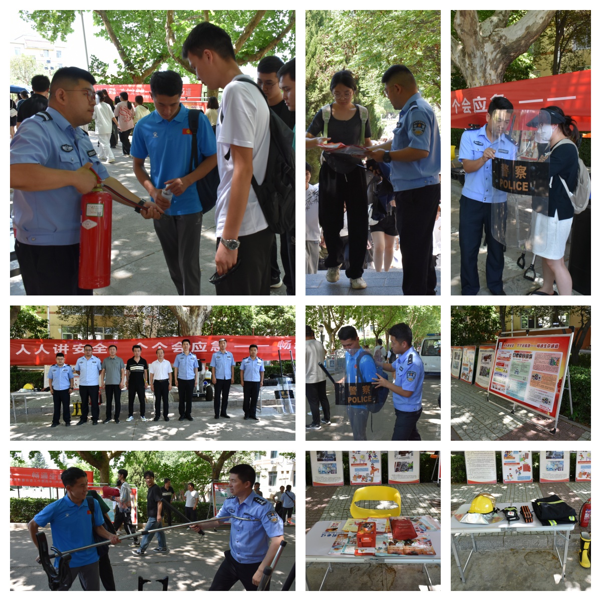 活动围绕安全生产月主题“人人讲安全,个个会应急——畅通生命通道”,通过摆放宣传展板、悬挂横幅、发放宣传彩页、消防器具使用、防暴器具使用及应急处置手法讲解等方式,不断强化红线意识,凝聚安全发展共识,营造校园安全氛围。