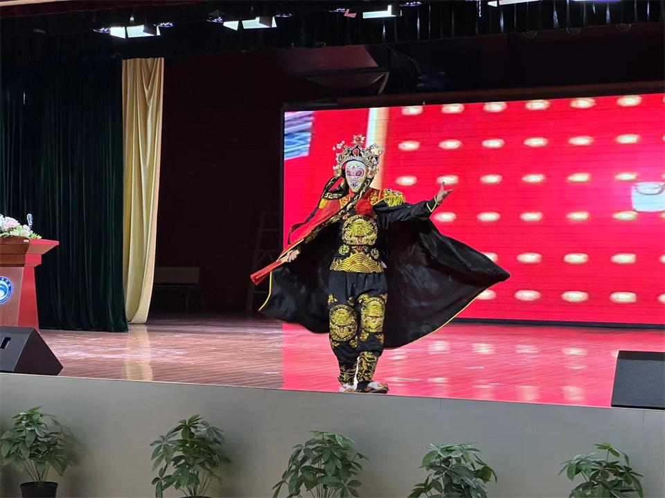 开学典礼在2022级室内艺术设计3班黄煜智同学精彩的川剧变脸表演中拉开帷幕。