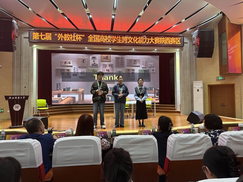 2024年10月19—20日,第七届“外教社杯”全国高校学生跨文化能力大赛——陕西赛区复赛和决赛在陕西师范大学(雁塔校区)落下帷幕。西安思源学院国际学院学生闫盈、文学院学生郭昊源和朱金灿组成的代表团队荣获陕西赛区复赛三等奖。
