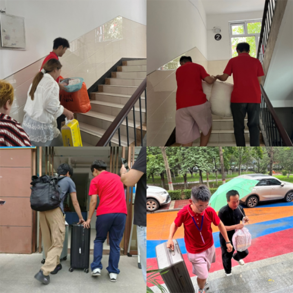 与此同时,宿舍管理科自律委员会校园服务站的“咨询引导”小组也忙碌不已,耐心细致地回答着新生和家长们关于宿舍位置、报到流程、校园布局等方面的各种问题,并提供了清晰的指引。他们用真诚的笑容和汗水,极大地减轻了新生初来乍到的陌生感与搬运负担,让报到之路变得格外顺畅和温暖。