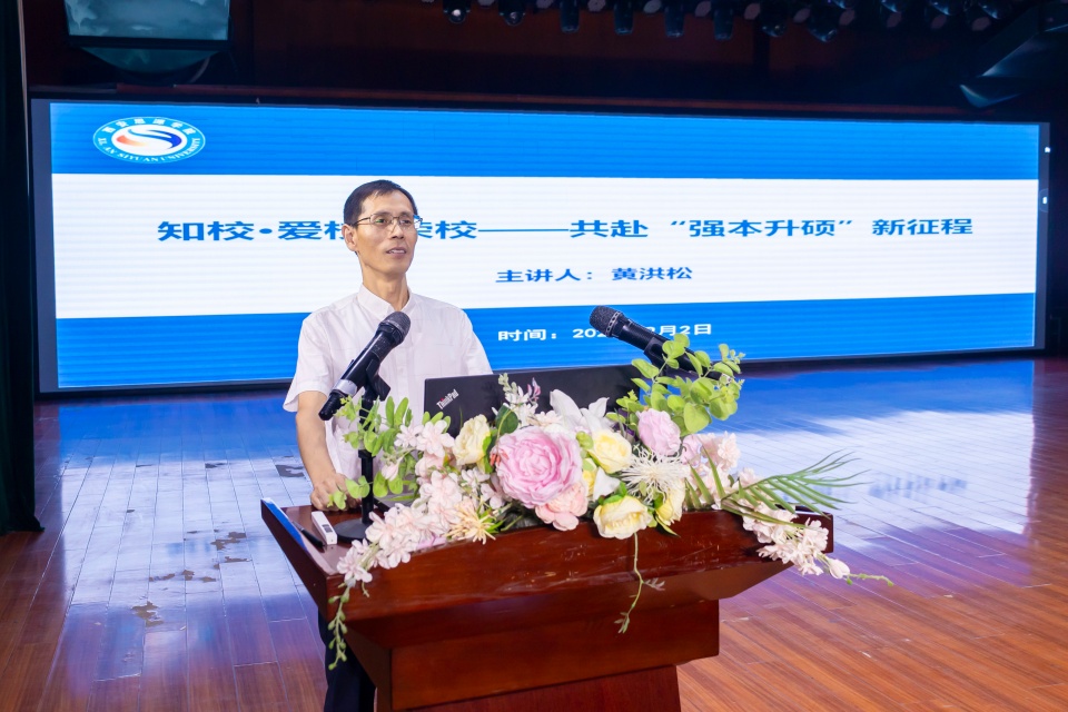 党委书记黄洪松作《校史校情》报告。他介绍了西安思源学院的三大台阶跃升并指出目前学校的定位是“应用型大学”,详细解读了学校以“三大战略”为基,向“强本升硕”目标冲刺,一要实现质量立校:把“好口碑”刻在人才培养的每一个环节;二要实现人才兴校:把“好老师”聚在你们成长的每一段路上;三要实现科研强校:把“好成果”用在服务社会、助力成长的每一个场景。