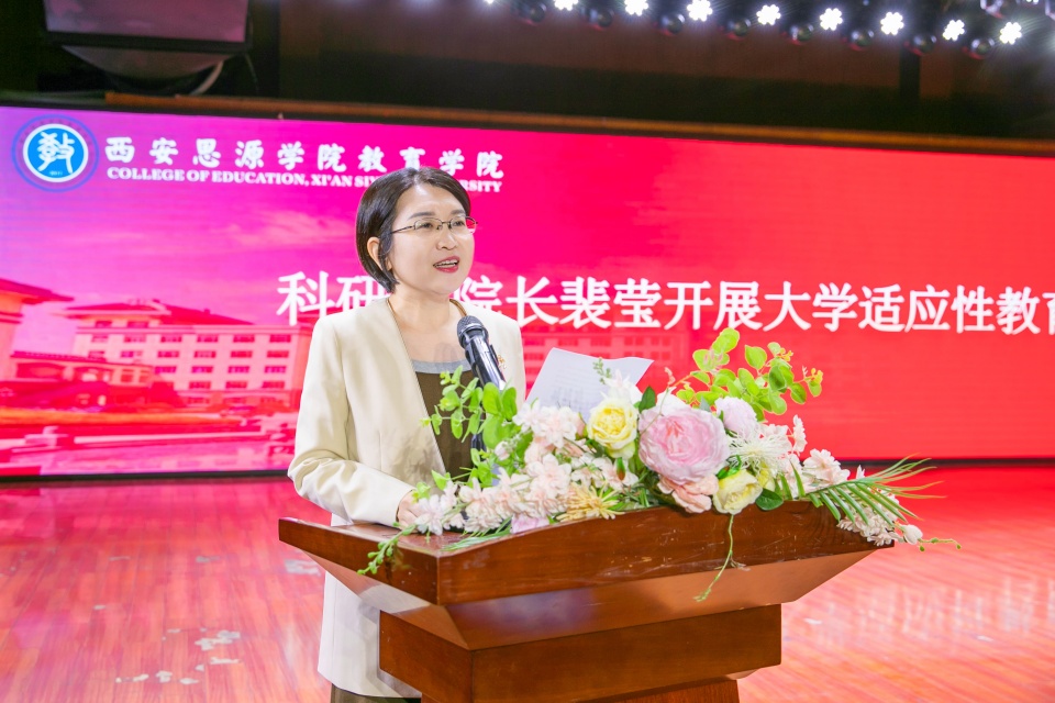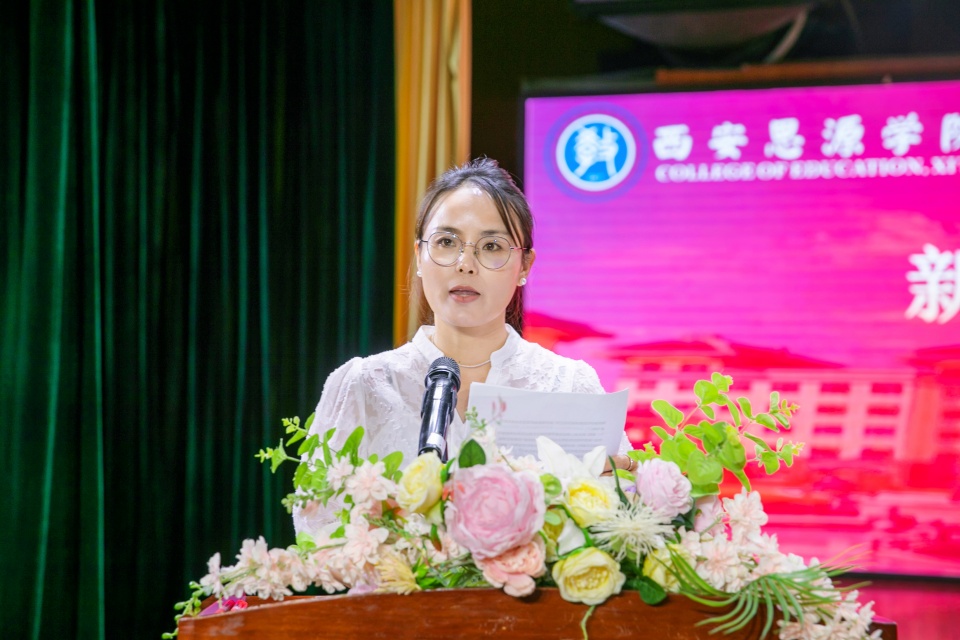 秋光为序,逐梦启航,万里征程风正劲,千钧重任再扬帆。2025年9月3日,西安思源学院教育学院2025级新生开学典礼暨入学教育开班仪式在学校大学生创业就业训练展示中心隆重举行。教育学院党委书记、学管副院长淡冰,科研副院长裴莹,教学副院长陈婷婷,综合办主任黄梦鸽,实验室主任杨超,学前教育系主任阎文娟,教育学系主任雷军莉等学院领导教师,2025级教育学1班杨雨珊家长路海华女士、教育学院2016级教育学专业优秀校友马横受邀参加开学典礼暨开班仪式,仪式由教育学院团总支书记鲁苗主持。