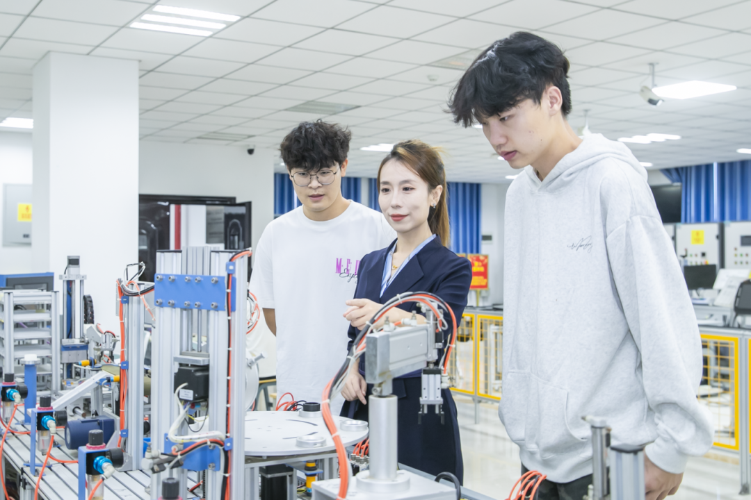 工学院教师刘鑫副教授(中)为学生介绍实验设备