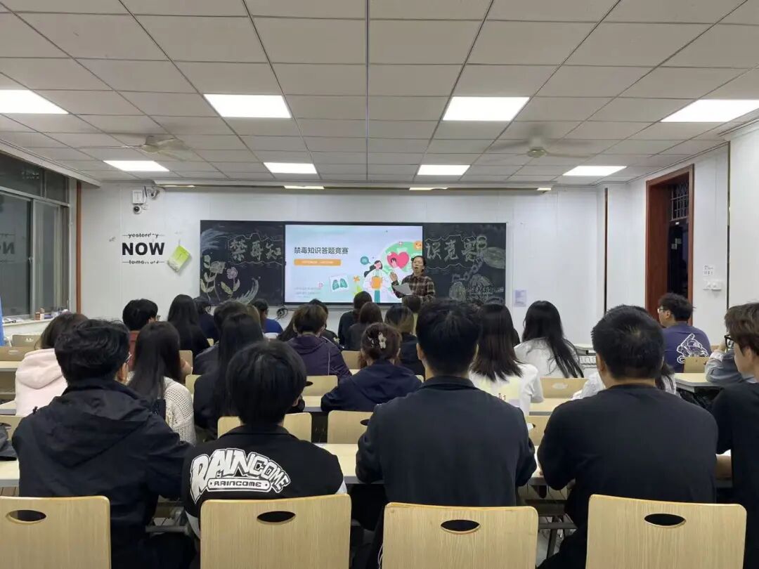 知识竞赛现场氛围热烈,各参赛同学精神饱满、斗志昂扬。在必答题环节,同学们对答如流、稳扎稳打,展现出扎实的禁毒知识储备;抢答题环节中,大家反应敏捷、果断出击,比分交替攀升,现场掌声与欢呼声接连不断;此外,活动还通过随机提问的方式调动全场学生参与热情,让更多同学在互动中巩固知识,有效扩大了禁毒宣传的覆盖面。