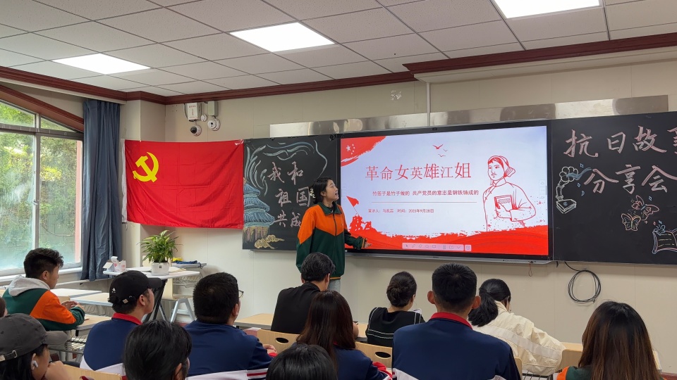 在“故事分享”环节,六位学生代表以真挚的情感、生动的语言,讲述了江姐、杨靖宇、方振武、左权、刘胡兰等抗日英雄的感人事迹。马凯蕊同学通过江姐在狱中受尽酷刑仍坚贞不屈的细节,展现了共产党人的钢铁意志;奉晓玉与王晓艺两位同学分别从不同角度还原了杨靖宇将军孤身奋战、壮烈牺牲的场景,令在场观众动容;王彦龙同学讲述的左权将军在十字岭突围战中为掩护部队牺牲的故事,让师生深刻体会到“舍生取义”的深刻内涵。
