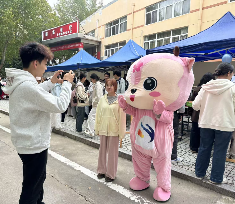 除了创意手工环节,活动现场的“萌趣打卡点”也成为学生们的热门聚集地。可爱的吉祥物“鹿小源”身着学院文化衫,摆出各种俏皮姿势,迎接同学们的合影;设计精美的活动主题打卡牌上,印着“关注心理,悦享生活”“毛线结情,心向阳光”等暖心标语,成为学生们记录活动瞬间的最佳背景。大家纷纷拿出手机,与“鹿小源”、打卡牌合影留念,还通过朋友圈、抖音等平台分享活动趣事,让这份活动中的欢愉传递给更多人。