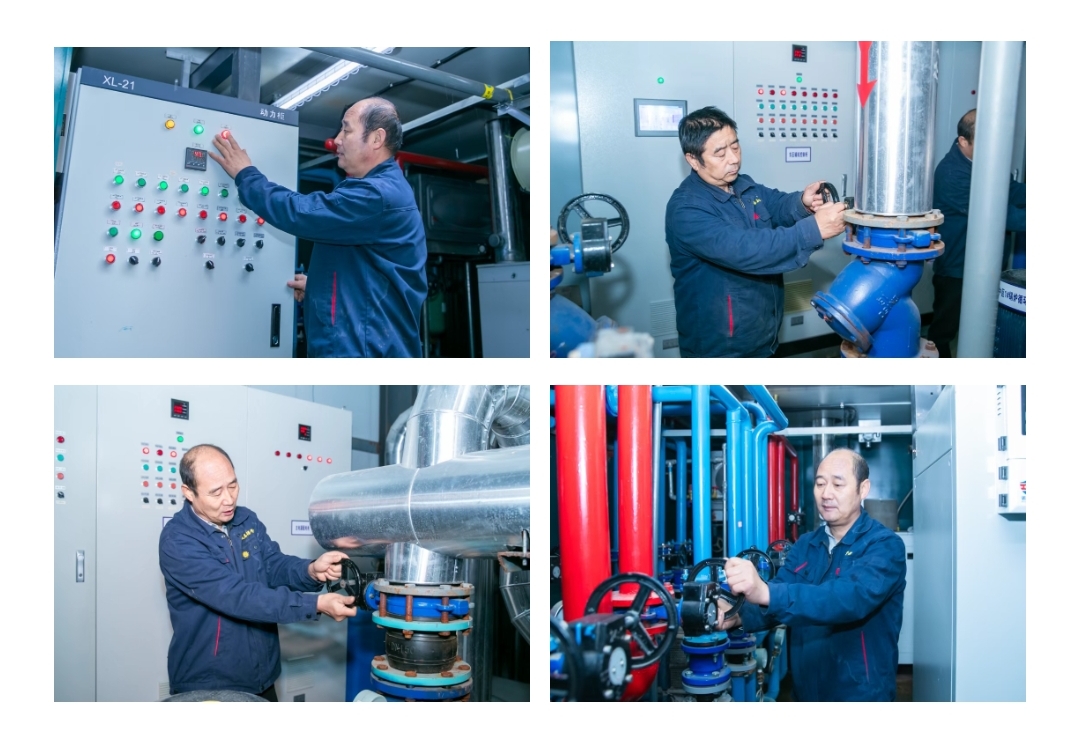 西安思源学院水电暖维护及管理处工作人员调试采暖设备