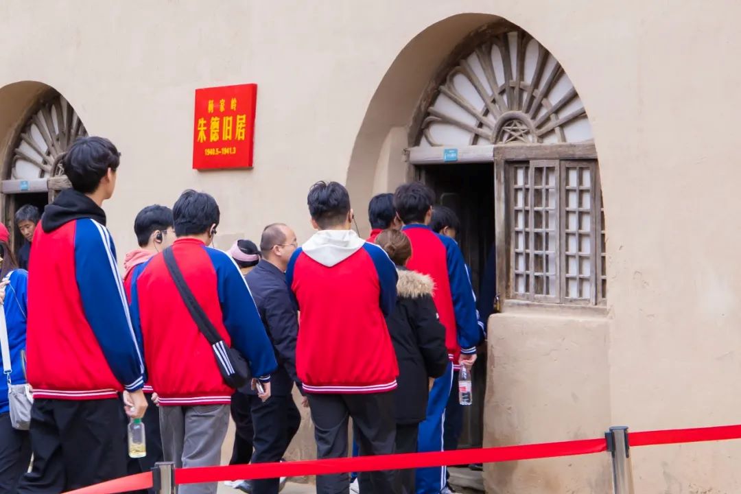 城市建设学院党委副书记、学管副院长张刚前排(右一)带队参观杨家岭革命旧址