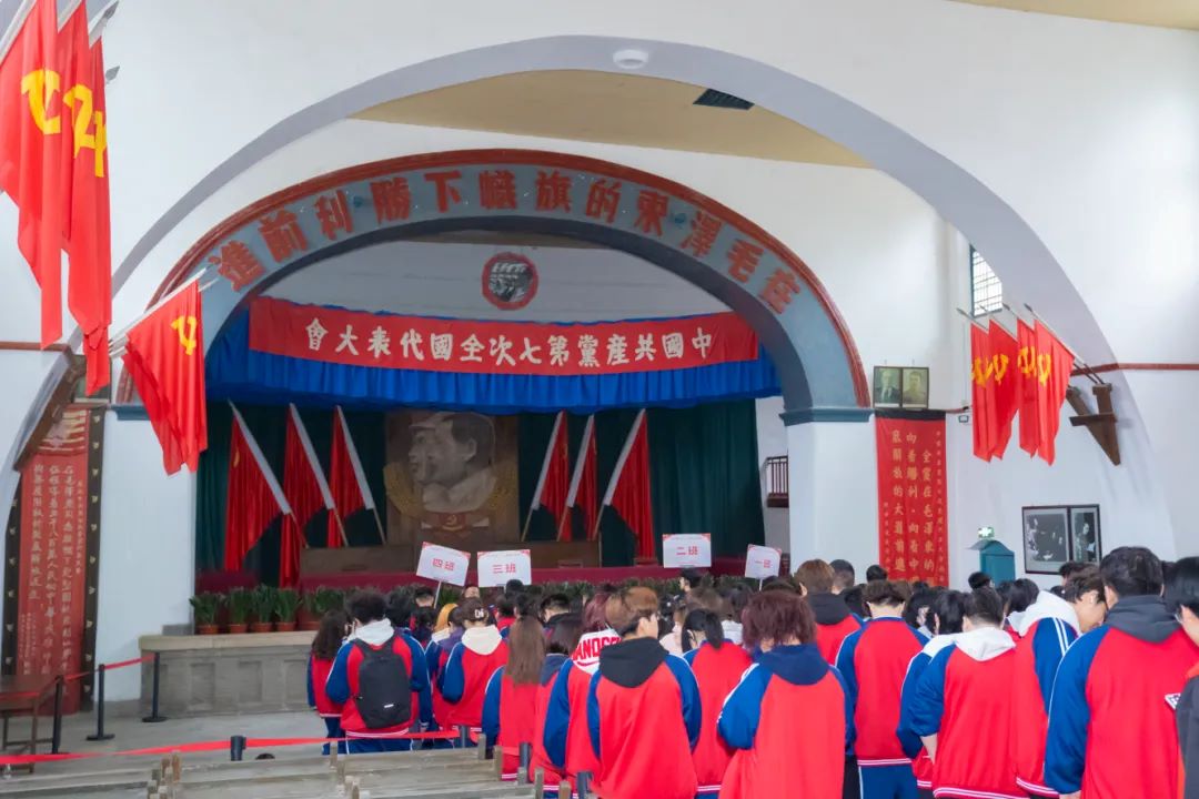 研习营师生在杨家岭革命旧址参观召开中国共产党七大的中央大礼堂