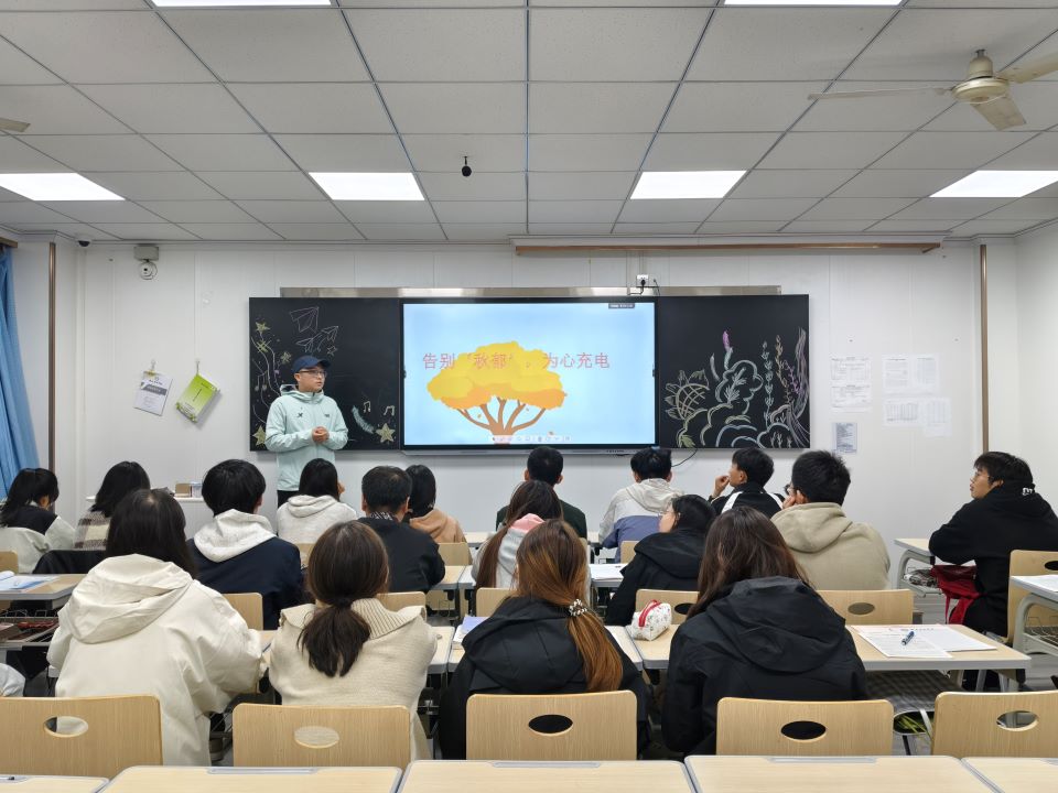 各班辅导员以“季节性情绪调节”为核心展开讲解,一方面系统普及“秋郁”的生理与心理成因、常见表现等基础心理知识,帮助学生科学认知季节性情绪变化;另一方面针对学期中期实验报告撰写、课程考核备考等学业压力,精准分享“情绪日记记录”“5分钟呼吸放松法”等实用调节技巧,让学生掌握可操作的情绪管理工具。