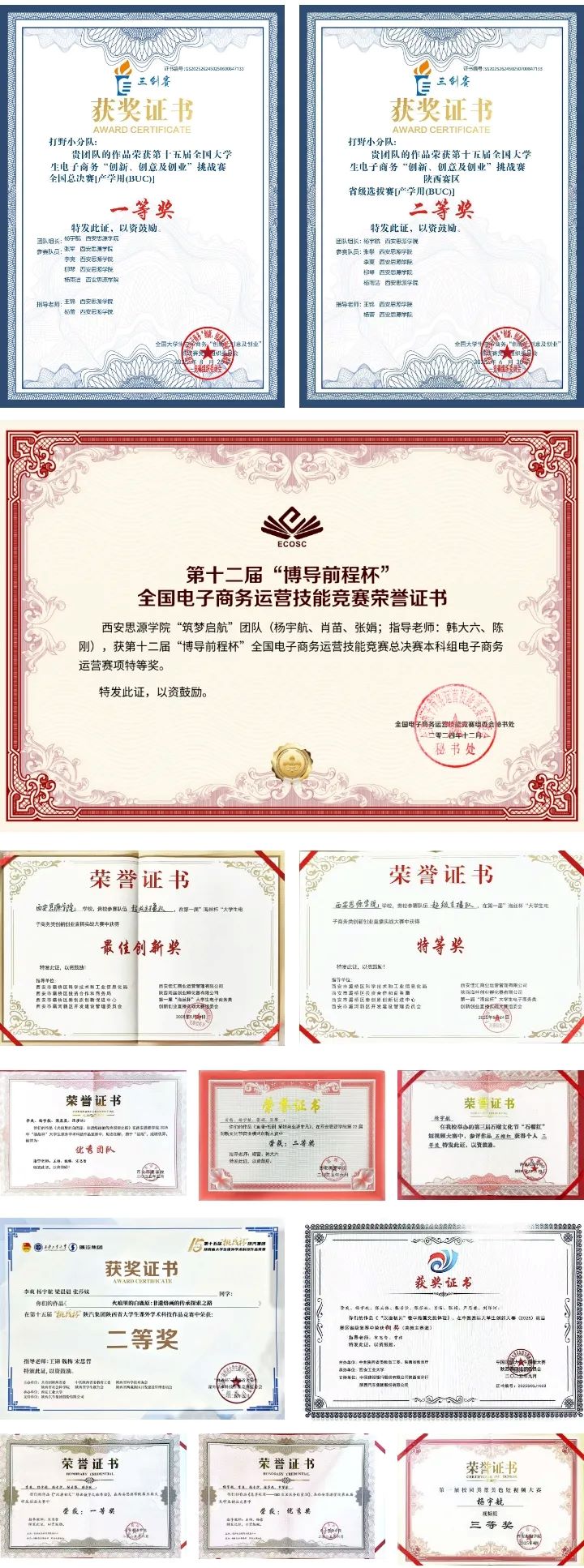 西安思源学院商学院2024级电子商务专业学生杨宇航所获部分奖项证书