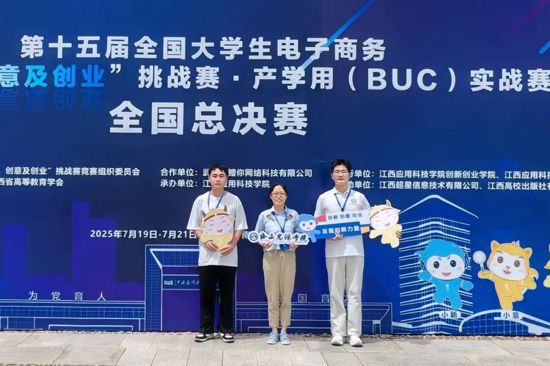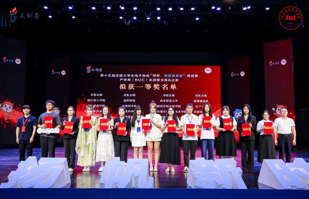 西安思源学院商学院2024级电子商务专业学生杨宇航(右六)负责的项目获第十五届全国大学生电子商务“创新、创意及创业”挑战赛全国总决赛[产学用(BUC)]一等奖
