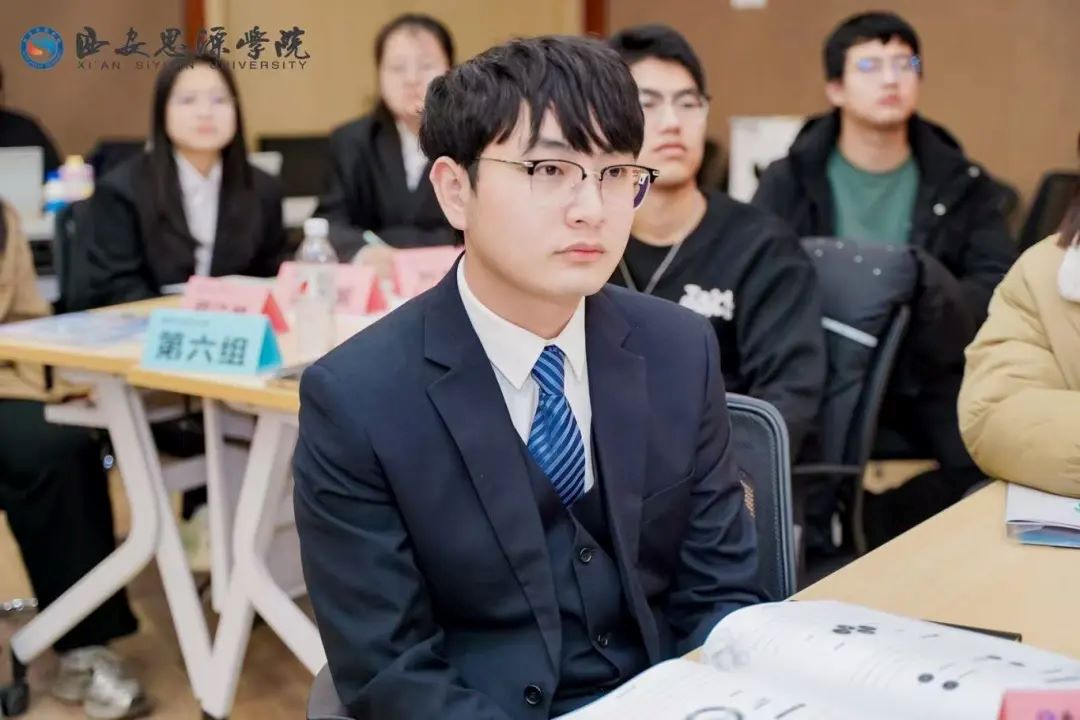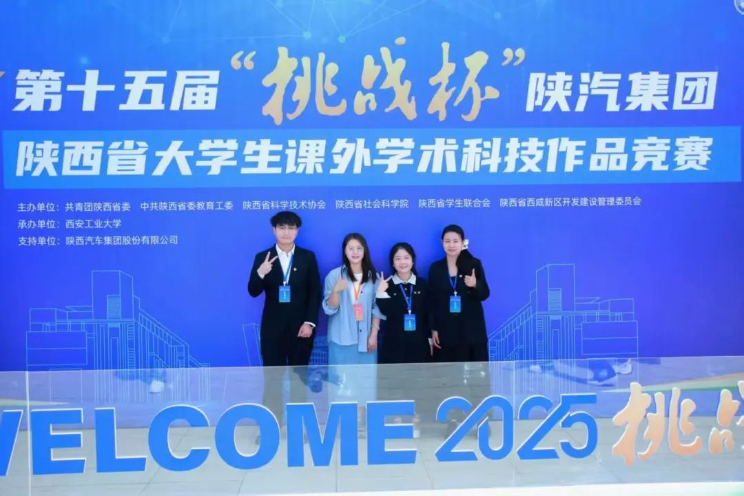 西安思源学院商学院2024级电子商务专业学生杨宇航(左一)在第十五届“挑战杯”陕汽集团陕西省大学生课外学术科技作品竞赛现场