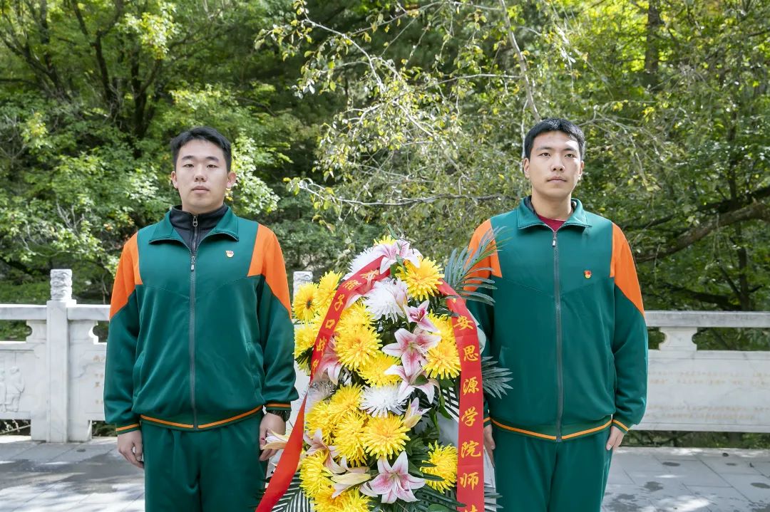 在腊子口战役纪念碑前,师生们集体向革命先烈默哀并敬献花篮,表达深切缅怀
