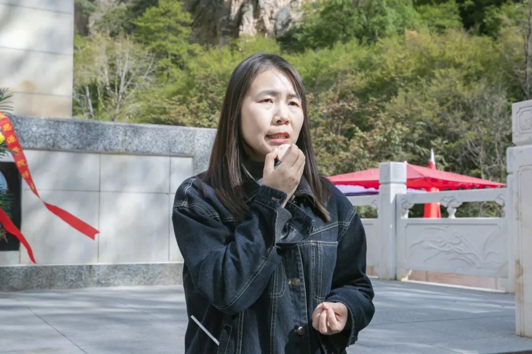 马克思主义学院教师王翠萍在腊子口战役纪念碑前进行现场教学