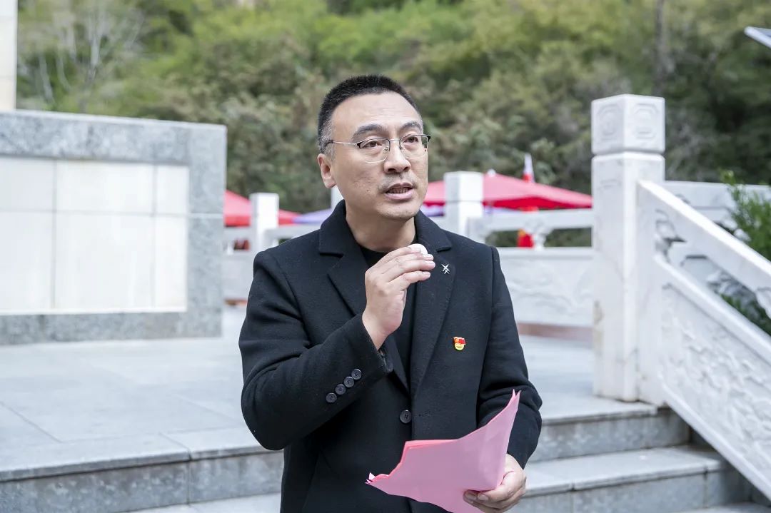 校党委宣传部部长朱强在腊子口战役纪念碑前带领全体师生重温入党誓词