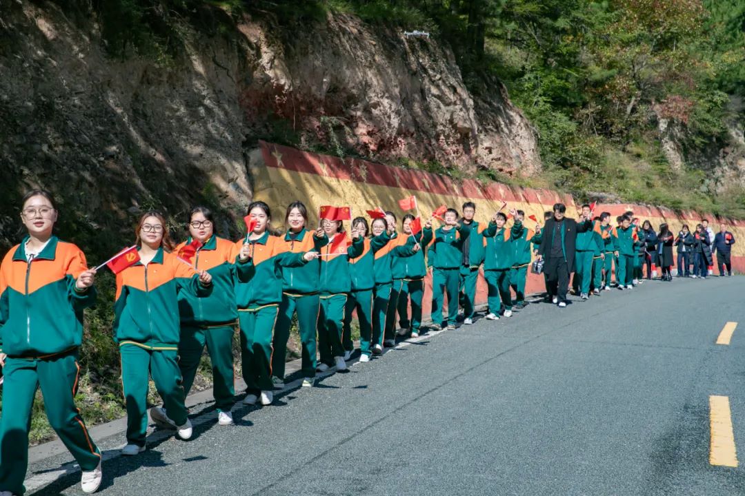 师生们跟随革命先辈的足迹,沿着蜿蜒曲折的山路开展“重走长征路”步行研学活动