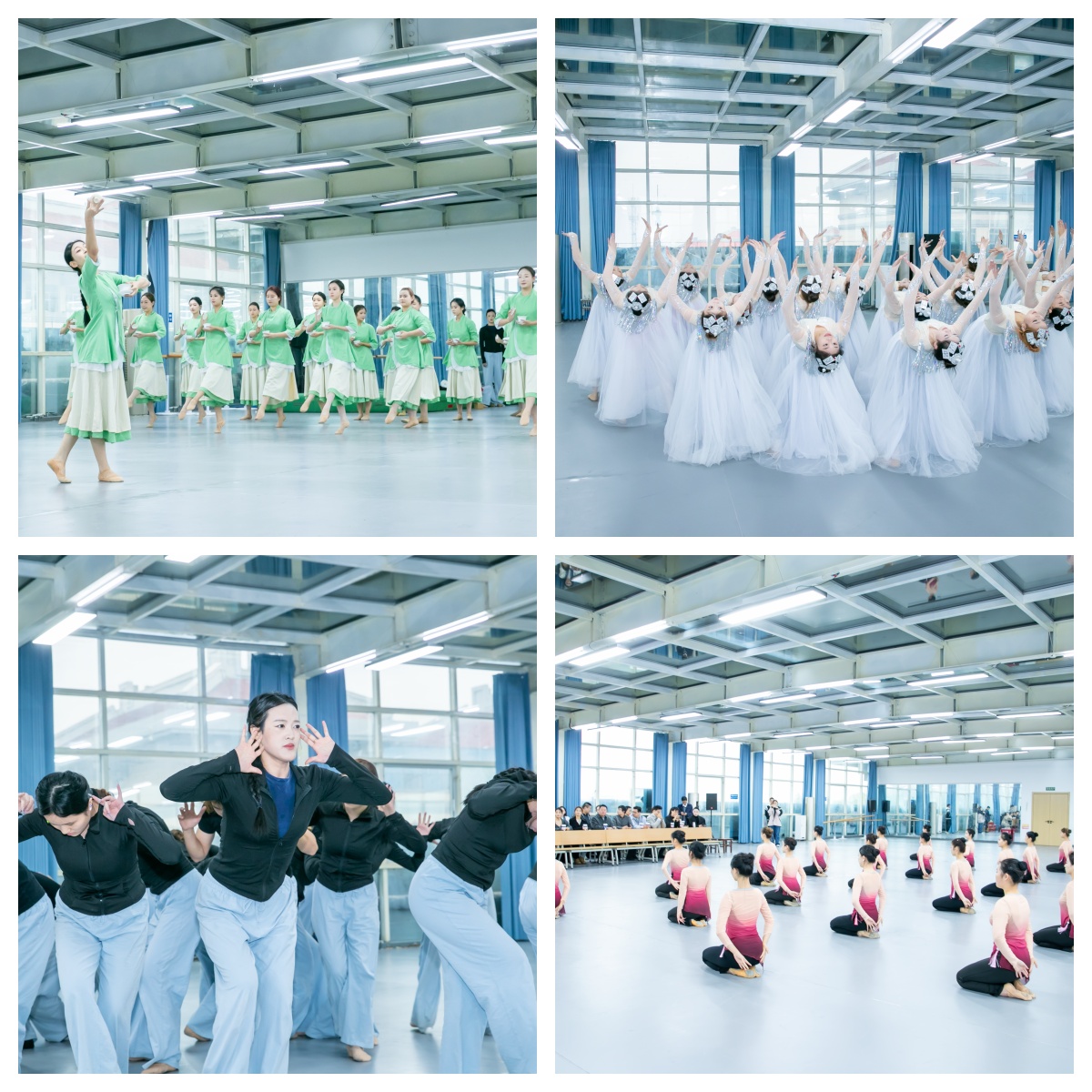 校企协同育人的共识在艺术展示与交流探讨中不断深化。舞蹈展演作为校企合作交流的重要开篇,成为展现学院教学成果与校企共育的生动窗口。展演现场,毕业班三支舞蹈各具特色,以专业演绎彰显育人成果。1班A组古典舞《一袭龙井香》以茶韵为骨,清雅身韵与细腻肢体语言相融,将东方美学的雅致意境精准呈现,动作编排兼具专业性与观赏性,尽显古典舞教学中的功底打磨;1班B组现当代舞蹈《觉醒年代》风格鲜明,铿锵有力的舞步、饱满浓烈的情感诠释先辈热血情怀,肢体张力与叙事感并重,既展现现当代舞的表达张力,更传递出青年学子对责任与担当的理解,贴合校企共育的价值导向;2班A组蒙古族舞蹈《额尔古纳河》满含民族风情,舒展的草原舞步、规整的队形变换将蒙古族舞蹈的豪迈与悠扬展现得淋漓尽致,舞者间的默契配合凸显日常训练的扎实成效,也印证了校企联合培养中对多元舞种的专业打磨。三支剧目涵盖不同舞种,既展现学子扎实的专业功底,更体现校企合作在舞蹈教学中对艺术素养的兼顾,获在场校企嘉宾一致好评。