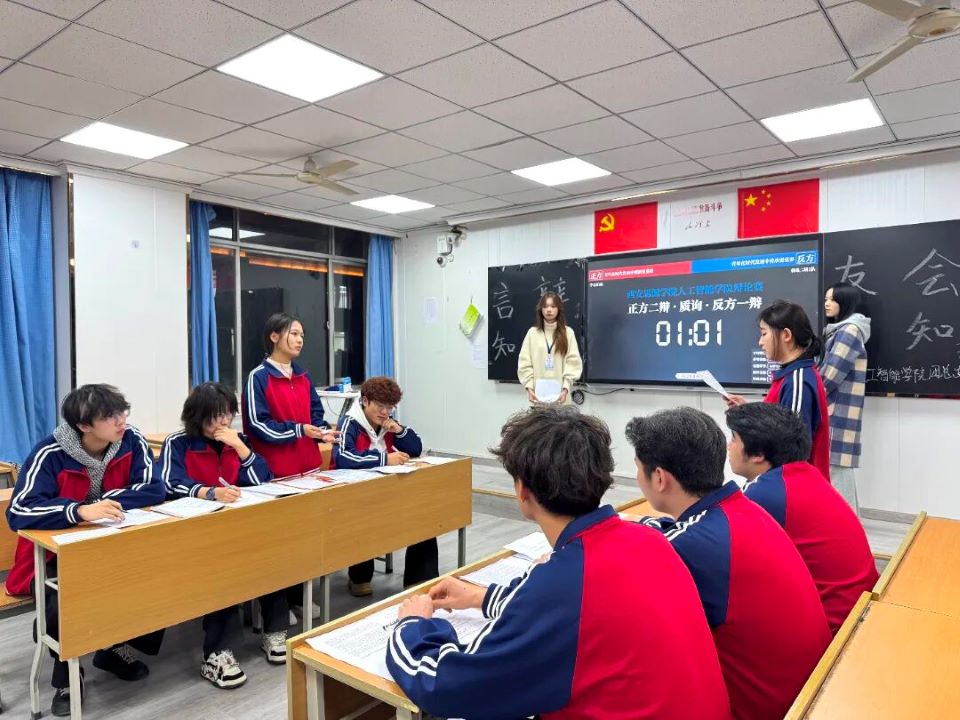 经过为期两周的激烈角逐,人工智能学院“言辩知音,友会真知”辩论赛于2025年11月6日晚在西楼506教室顺利举行决赛。初赛阶段,全院共有16支队伍报名参赛,经过多轮淘汰赛的层层选拔,最终4支优秀队伍脱颖而出,成功晋级决赛。比赛中,各参赛队伍围绕“人工智能对就业市场的影响”“当代青年该如何为社会做出贡献”和“当代青年应如何发力,助力创新实践”等热点议题展开激烈辩论,充分展现了当代大学生对社会问题的深入思考与责任担当。