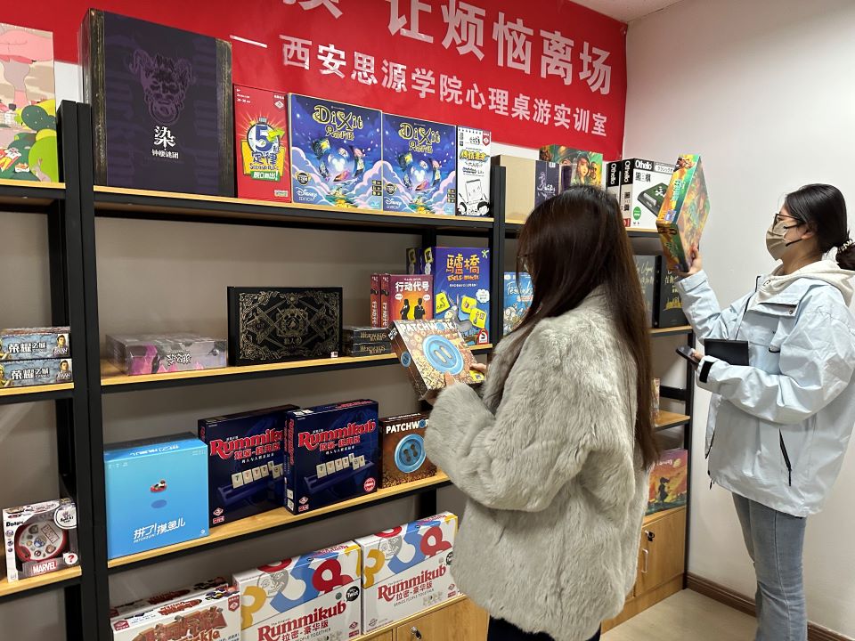 在沙盘游戏室中,学生们近距离观察多样沙盘模具,还亲手体验了沙盘摆放,初步感受沙盘游戏在心理疏导中的作用,同学们可以通过沙盘这一“无声的语言”,更好地洞察自己的内心世界。在情绪宣泄室内,学生们在志愿者的指导下尝试击打仿真人等解压设施,学习合理释放情绪,专业的宣泄器材和保护设施,为积压的负面情绪提供了一个安全、健康的出口,释放了内心的压力与负面情绪。在心理放松室里,大家体验了先进的测量仪器和精神躺椅,了解如何科学地放松身心、缓解焦虑,掌握情绪管理的“钥匙”,在舒缓的音乐声中,感受心灵的深度放松,仿佛所有的压力都随之消散。在VR心理体验区内,同学们佩戴专业VR设备,沉浸式进入放松场景、情绪调节模拟等虚拟空间,在静谧的森林中感受自然疗愈,在互动场景中学习应对压力的方法,逼真的体验感让大家仿佛身临其境。