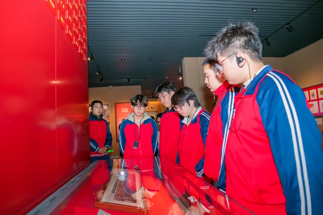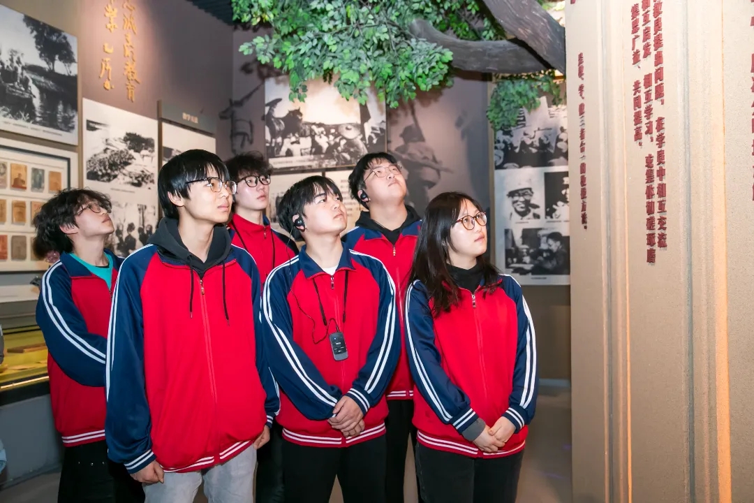 11月16日,师生怀着敬仰之情走进旧址,跟着讲解员一同学习“抗大小课堂”《抗大抗大,越抗越大》,现场氛围激昂而真挚,师生们无不被那珍贵的文物和历史照片展示出的抗大学员在艰苦条件下努力学习的精神所打动。不少同学在交谈中坦言,从前读到“抗大抗大,越抗越大”不太理解其内涵,此刻站在抗大当年的教室复原场景前、看着学员们用过的煤油灯与教材,才真正感受到这八个字背后的重量——它不仅是抗大办学规模从数百人到十余万骨干的增长,更是革命理想在烽火中薪火相传、抗大精神向全国战场延伸的生动写照。