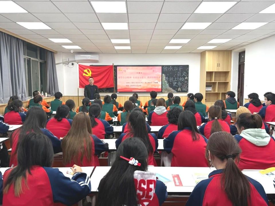 为深入贯彻落实立德树人根本任务,推动学校领导干部深入基层联系学生工作落地见效,2025年11月23日,西安思源学院机关第三党总支部书记、学工部部长苏晓峰在1号实验楼306教室,以“深学全会精神,传承延安薪火,勇担幼教使命”为主题,为教育学院学生党员及卓越园长班全体学生讲授专题党课。课程紧密结合“到延安去——三秦学子圣地行”研学实践成果,推动党的二十届四中全会精神与学前教育人才培养深度融合,为学员们呈现了一堂兼具思想深度、理论高度与实践温度的思政大课。