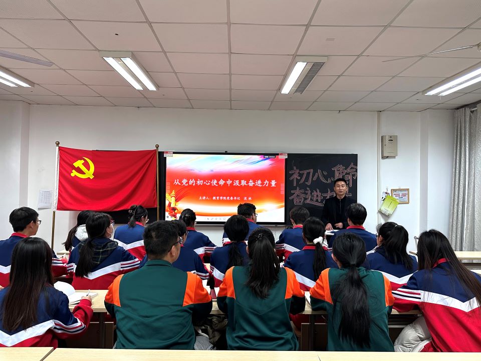 为深入学习贯彻习近平新时代中国特色社会主义思想,落实新时代党的建设总要求和新时代党的组织路线,切实引导入党积极分子端正入党动机、筑牢信仰之基、补足精神之钙、把稳思想之舵,2025年12月2日,中共西安思源学院教育学院委员会第75期入党积极分子培训班第一堂党课正式开讲。教育学院党委书记、学管副院长淡冰以“从党的初心使命中汲取奋进力量”为主题,紧扣学院学前教育、教育学两大核心专业特色,立足教师职业发展初心与学生成长成才需求,为全体入党积极分子带来了一堂理论扎实、案例鲜活、兼具思想深度与实践温度的专题党课。