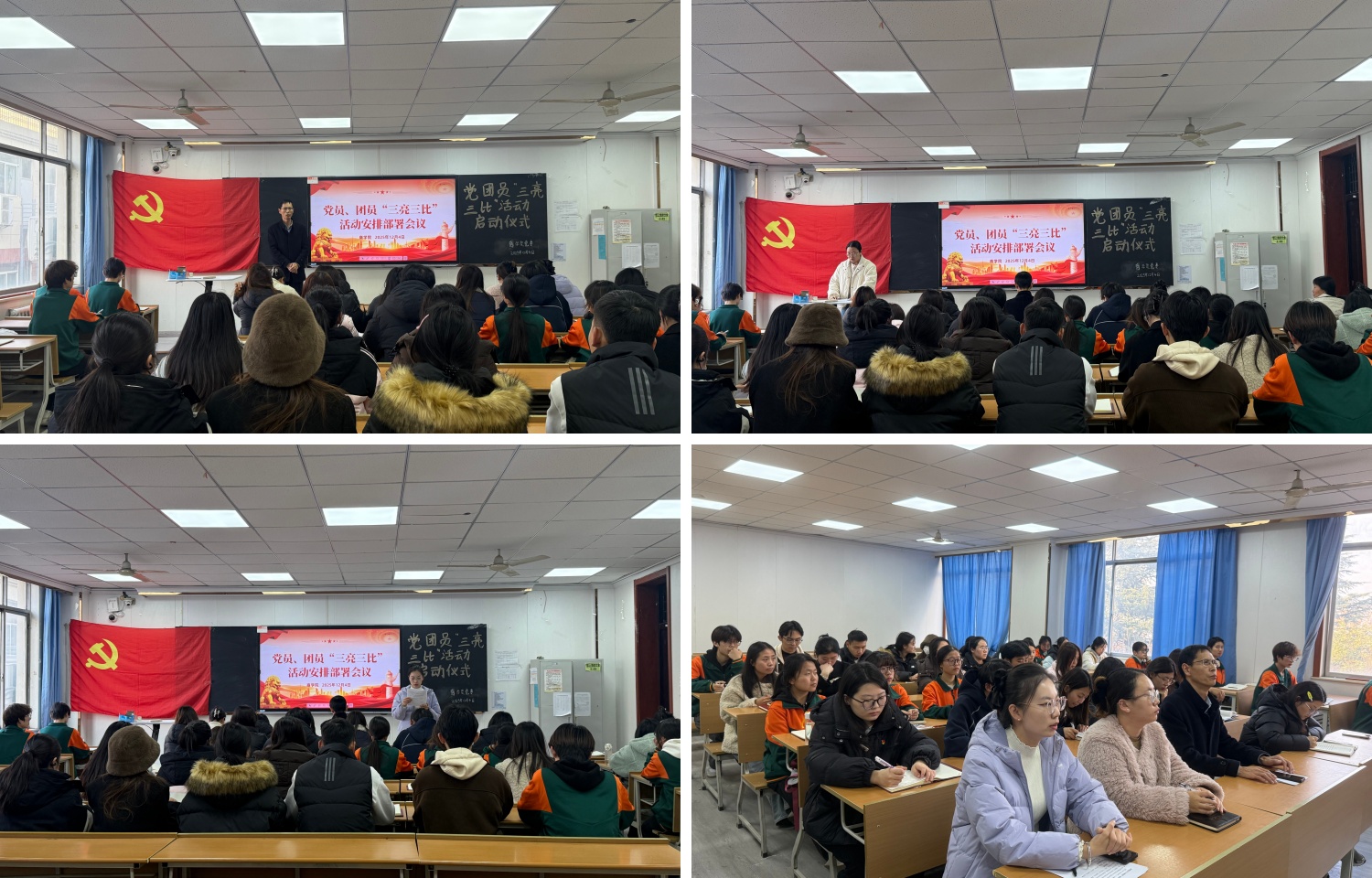 针对全体学生党员,黄洪松提出三点要求。一是要以“亮”促责,强化身份意识。主动亮明党员身份、亮清岗位职责、亮实工作承诺,时刻以党员标准严格要求自己,自觉接受师生监督,树立党员良好形象;二是要以“比”促优,激发干事动能。围绕学习成绩、专业技能、服务成效、工作作风等方面开展比拼,在比学赶超中查找差距、补齐短板,不断提升自身综合素质;三是要以“实”促效,确保活动落地见效。坚持实事求是,力戒形式主义,把活动开展与日常学习工作、学院中心任务紧密结合,以实际行动为学院发展、为学生成长成才贡献力量。