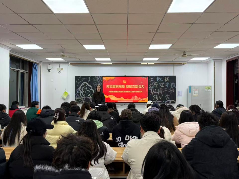 为深入贯彻立德树人根本任务,强化青年骨干队伍建设,全面提升班团干部履职能力与综合素养,助力学院班团干部工作高质量发展,12月3日晚,大数据管理学院在中心楼627教室举办专题培训会。全院班团干部齐聚一堂,围绕班团工作实务技巧等核心内容,接受系统培训与深度指导。