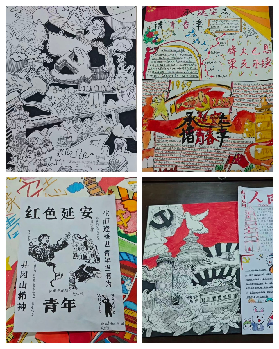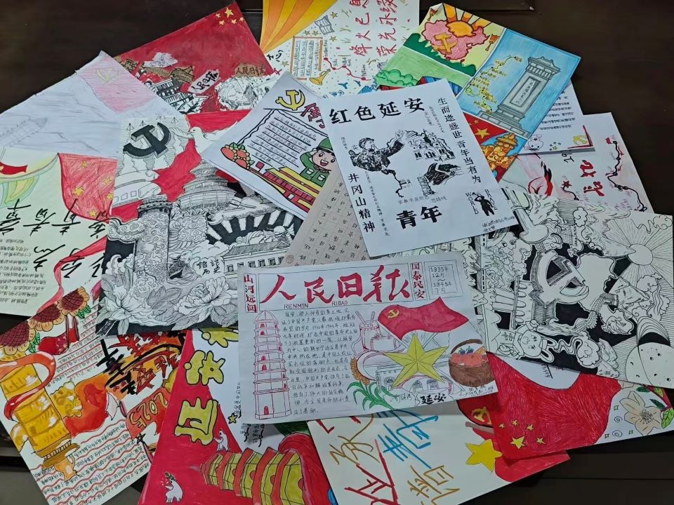 手抄报作品中,同学们以图文并茂的形式生动再现了延安时期的重大历史事件、革命先辈的奋斗足迹,字里行间饱含对革命岁月的追忆与敬仰。书画作品里,笔墨丹青勾勒出革命圣地的壮丽风貌,线条色彩定格了艰苦奋斗的感人场景,既展现了学子们扎实的艺术功底与创新思维,更彰显了新时代青年对延安精神的深刻理解与传承自觉。