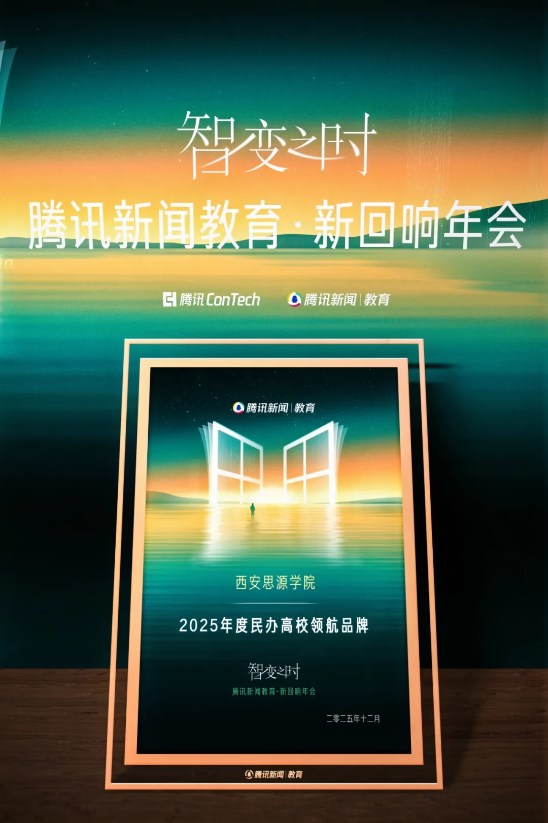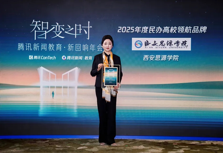 2025腾讯新闻教育•新回响年会由腾讯新闻•教育频道主办,分别设置了主旨演讲、圆桌论坛等多个主题报告与论坛环节。会议邀请了教育领域的专家和行业精英,围绕“协同赋能:新技术时代的教育新思维”“教育智能化:技术浪潮中,传统与创新的共生之道”“教育全球化:AI 赋能下,教育全球化的新路径与真价值”“教育个性化:智能时代,如何建立每个学生的成长坐标系”等主题进行研讨与交流,涵盖理论解读、趋势分析、案例分享等,引发与会者深度思考。西安思源学院应邀出席2025腾讯新闻教育•新回响年会,并在“引领性”“专业性”“影响力”“合规性”等多维度评选中广受好评,收获“2025年度民办高校领航品牌”殊荣,这也正是社会各界对西安思源学院办学育人成绩和高质量发展的充分肯定。