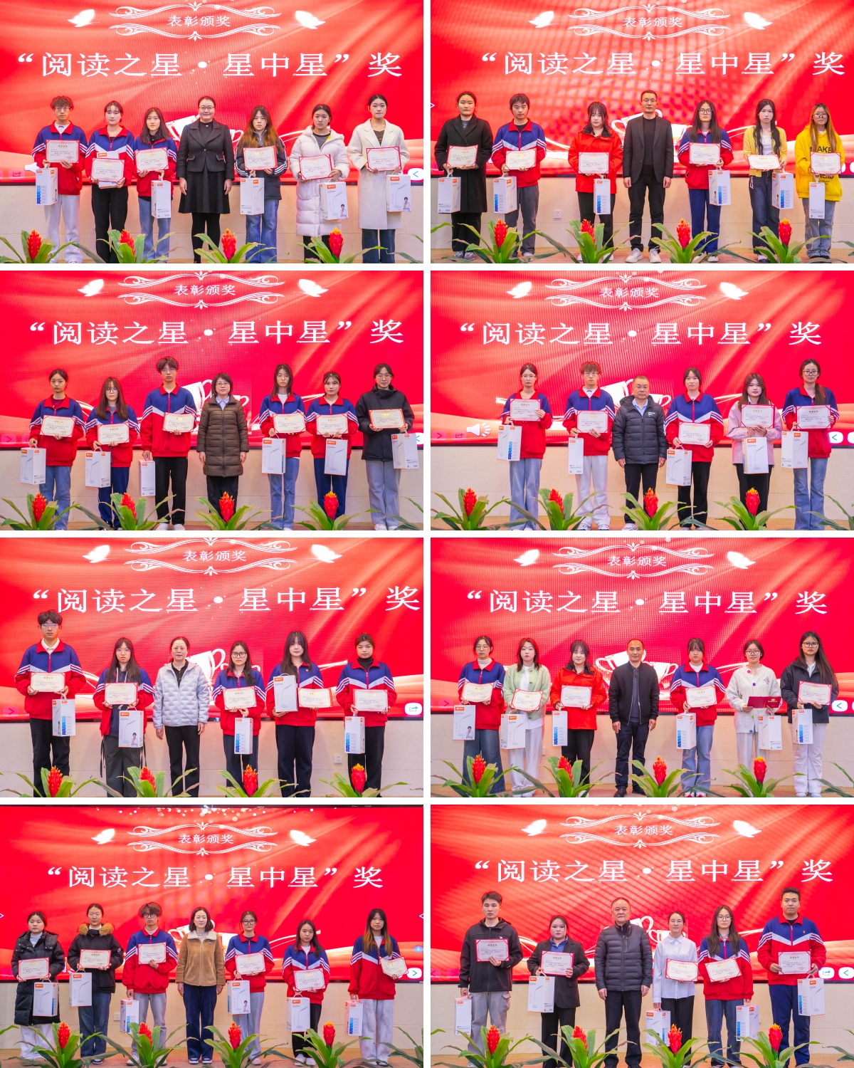 教务一处于明娇副处长、教务二处张一恒处长等领导分批次为“阅读之星·星中星”获奖学生颁奖