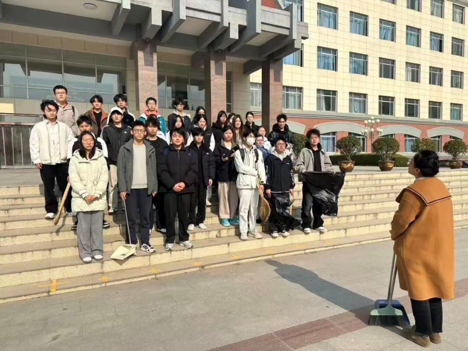 随后,在冯嘎老师的统筹安排下,同学们按照预先划分的责任区域各司其职、协同配合。主干道上,同学们手持扫帚组成“清扫梯队”,从道路两端向中间稳步推进,将堆积多日的落叶扫成整齐堆垛后逐一装袋;人行道的砖石缝隙间,大家蹲身俯身,用夹子细致夹出隐藏的纸屑,连路沿石下方的细小垃圾也绝不遗漏;宿舍楼周边,师生分工明确,有人专注清扫落叶,杜绝腐烂异味滋生;有人手持长杆夹子,穿梭在路灯杆周边捡拾烟头;有人专门规整垃圾桶周边环境,归置散落垃圾。全方位的清扫行动扫清了卫生死角,让校园面貌焕然一新。