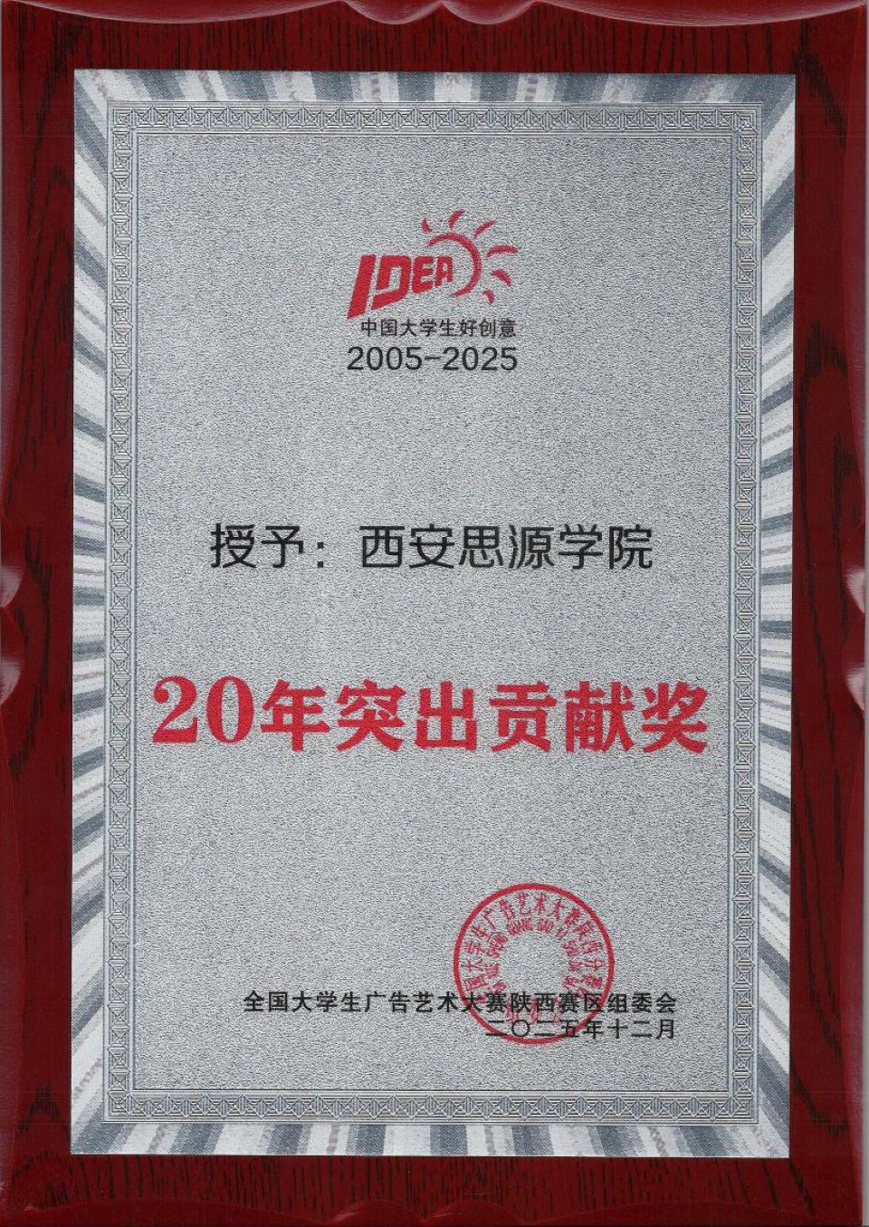 此次盛典上,西安思源学院凭借对陕西赛区长期以来的鼎力支持与赛事推动贡献,荣获“20 年突出贡献奖”。自陕西赛区设立以来,文学院始终将大广赛作为深化实践教学、提升学生专业能力的重要载体,持续组织师生积极参赛,以赛促学、以赛促练,多年来在国赛、省赛舞台上屡获佳绩,充分彰显了学校人才培养的扎实功底与思源学子的过硬专业素养。同时,学校还凭借完善的组织保障、高效的赛事推进,斩获 “2025 年度优秀组织单位奖”。
