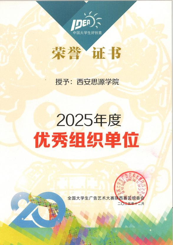西安思源学院得“2025年度优秀组织单位奖”证书