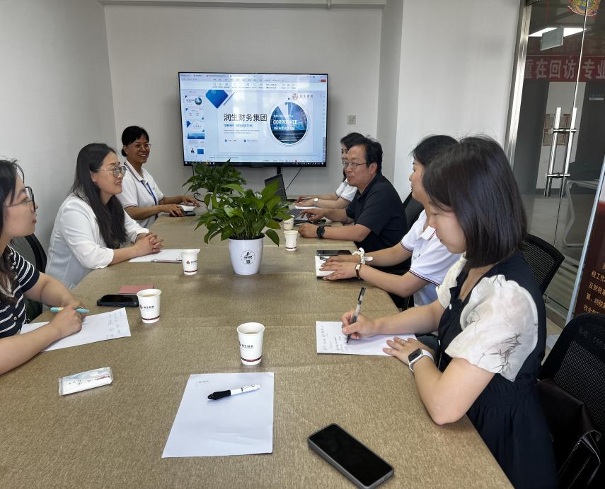2025年6月5日,商学院财务管理专业教研室主任李媛丽老师带领专业教师一行,赴陕西润生财务集团开展合作洽谈。陕西润生财务集团董事长崔润生及财务主管刘雨菲热情接待了教师团队,双方围绕行业发展趋势、财务管理岗位能力需求、人才培养模式创新、学生到岗实习等核心议题展开深入交流。