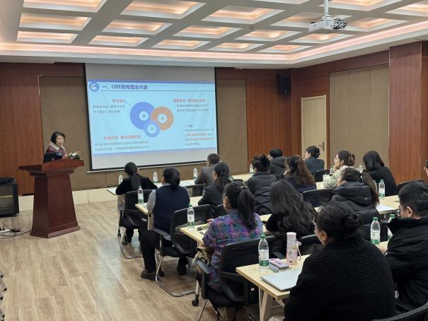 活动伊始,学校教育教学质量督导处刘瑞霞教授带来“OBE教育理念下的培训”专题讲座。刘教授围绕“OBE教学理念”展开全面且细致地阐述。她着重强调厘清教学基本逻辑的重要性,深入剖析了人才培养方案、毕业要求、教学大纲和教材之间的内在联系,清晰梳理出这些要素在教学过程中的逻辑关系与相互影响。通过这一部分的讲解,教师们对课前准备工作有了更为清晰、准确的认识,为后续教学工作的开展提供了坚实有力的指导。