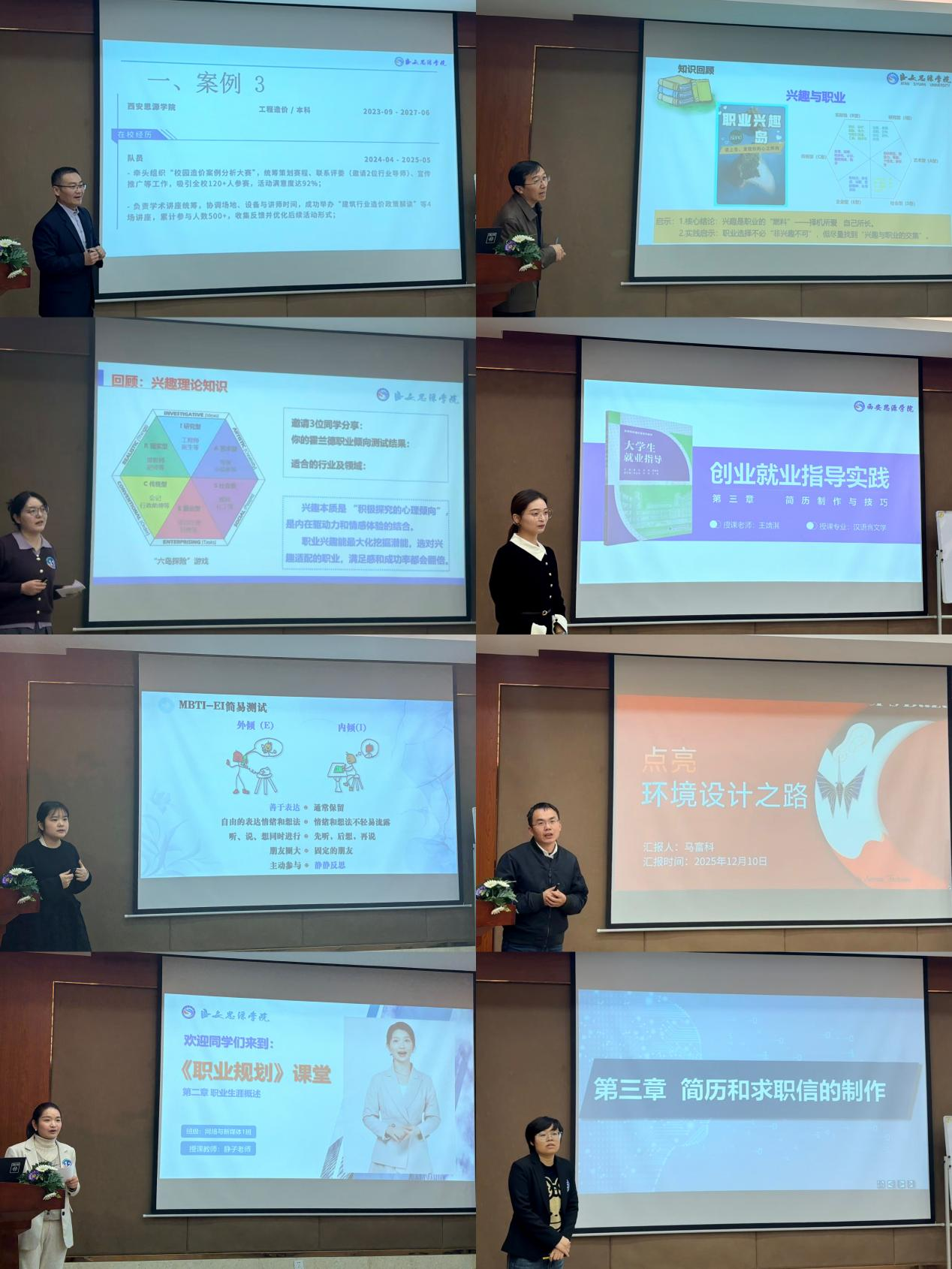 第二届职业规划课程教学赛道决赛圆满举办,不仅为全校相关课程教师搭建了交流学习、切磋技艺的平台,更集中展现了学校职业发展教育教学的阶段性成果,也为生涯教育体系奠定了坚实基础。未来,我校将持续以赛事为契机,优化职业发展与就业指导,进一步引导学生树立科学成才观与职业观,精准规划职业发展路径,为助力学子高质量就业、实现职业理想保驾护航!(供稿/创业就业指导与服务中心)