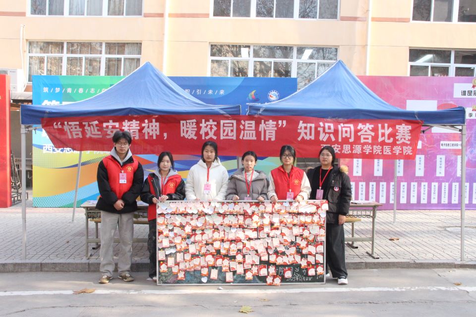 为传承红色基因、普及实用技能、丰富校园实践。医学院团总支于2025年12月10日老九龙餐厅外12:30至18:00举办“悟延安精神,暖校园温情”知识问答比赛,全校同学积极参与其中,在互动体验中汲取精神力量、提升综合素养。
