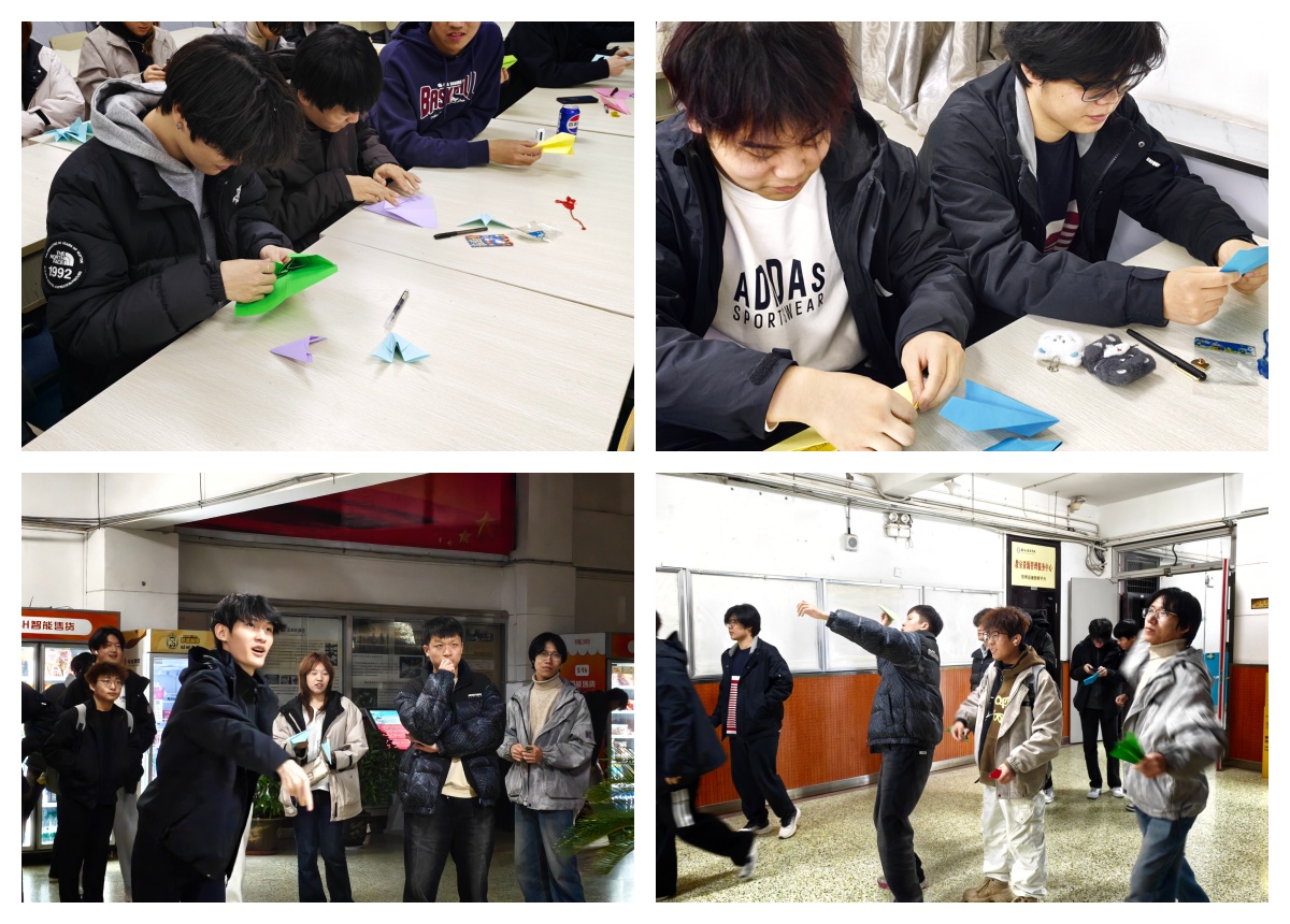 活动现场,同学们纷纷拿起纸笔,将藏在心底的童年小故事认真书写在彩纸上。有的追忆了童年里无忧无虑的玩耍时光,有的分享了成长途中印象深刻的温暖瞬间,还有的倾诉了步入大学后的小烦恼与小确幸。在分享环节,大家勇敢地走上台前,讲述着属于自己的独家记忆,真诚的话语引发了在场同学的强烈共鸣,现场暖意融融。随后的纸飞机制作与飞行比赛将活动推向高潮,同学们精心折叠纸飞机,在欢呼声中奋力掷出,承载着故事与期许的纸飞机腾空而起,划出一道道轻盈的弧线。