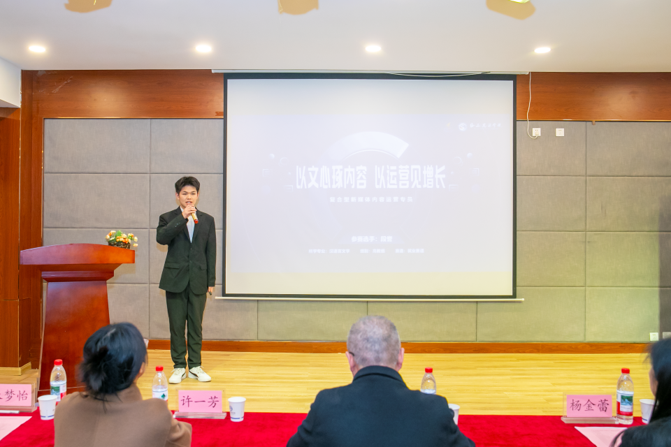 典礼伊始,来自文学院的就业赛道参赛选手段誉同学与文博学院的成长赛道参赛选手索奔儿同学分别进行了精彩的职业规划现场展示。他们清晰的职业目标、详实的行动路径和自信的现场表现,充分展现了思源学子扎实的规划能力和昂扬的精神风貌,赢得了在场嘉宾的阵阵掌声。