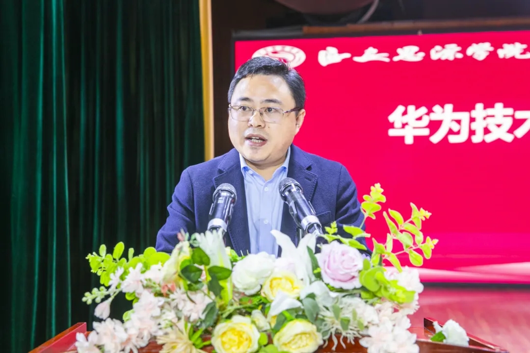 华为技术有限公司陕西产业发展与生态部部长王国兵在讲话中高度认可西安思源学院的办学理念与人才培养成果。他表示,华为将依托全球产业资源,为学院提供定制化实训、认证绿色通道与就业对接等全方位支持,推动学院建设成为华为生态中重要的人才培养基地,为ICT行业持续输送创新力量。