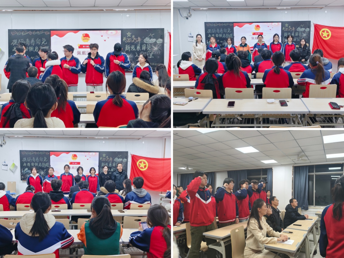 参会老师们为新团员佩戴上了那枚熠熠生辉的团徽,这不仅代表着荣誉,更是沉甸甸责任的象征。