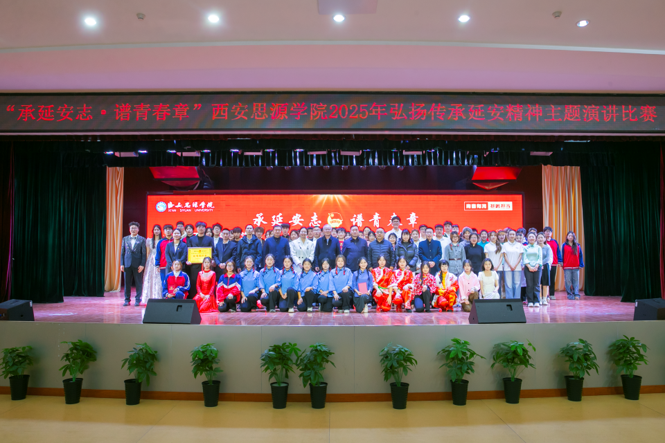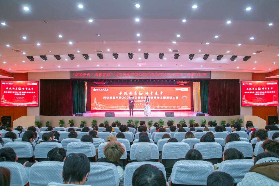 为深入贯彻《新时代陕西省立德树人工作指南》部署,响应中共陕西省委教育工委“到延安去” 三秦学子圣地行活动号召,引导青年学子从红色基因中汲取奋进力量,由共青团西安思源学院委员会主办、城市建设学院团总支、校团委文艺部承办的“承延安志 谱青春章”西安思源学院2025年弘扬传承延安精神主题演讲比赛决赛于12月24日15:30在大学生创新创业训练展示中心二楼顺利举行。全校500余名师生代表齐聚一堂,共同聆听青春与信仰的对话,感受红色精神的时代回声。