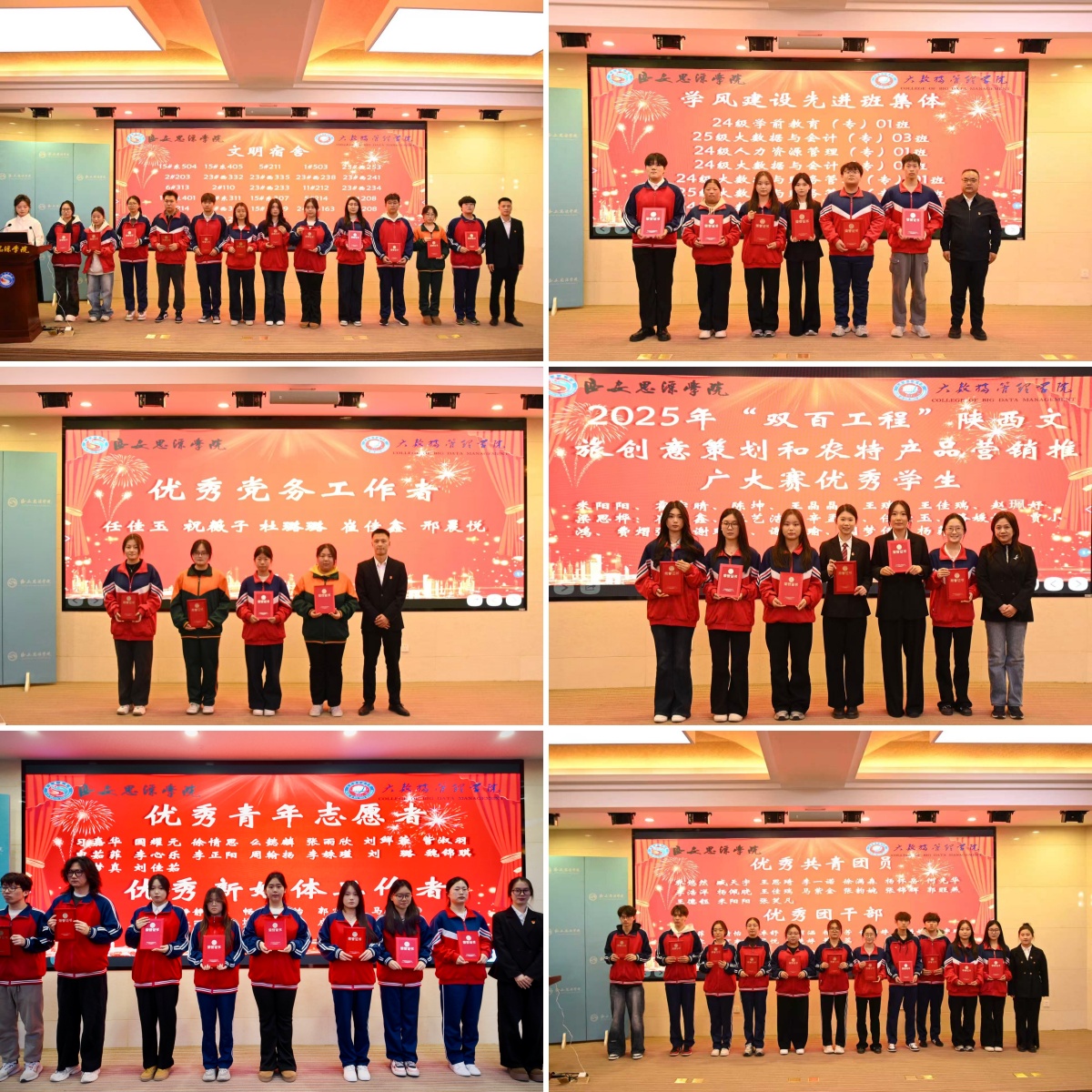 随后进入学生表彰颁奖环节,现场氛围庄重而热烈。在全场师生的见证下,获奖集体与个人代表依次登台领奖,学院领导嘉宾为获奖者颁发荣誉证书。现场一次次响起雷鸣般的掌声,既是对先进者的由衷祝贺,更是对全院学子见贤思齐、奋发向上的殷切期许,凝聚起“比学赶超、争当先锋”的浓厚氛围。