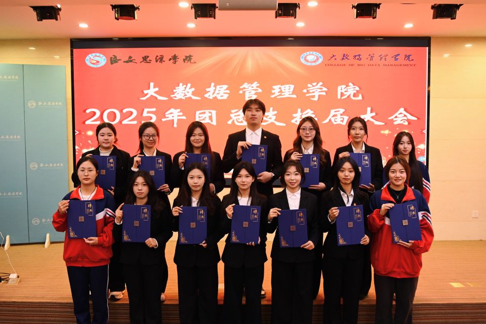 大会尾声,参会领导与新一届团总支学生干部合影留念,定格下这一意义非凡的时刻。此次换届大会的圆满召开,为学院团总支注入了新鲜血液、焕发了全新活力。未来,大数据管理学院团总支将以此次换届为契机,持续强化组织建设、深耕品牌活动,推动团学工作再攀新高,为学院高质量发展贡献青春智慧与力量。(供稿/大数据管理学院)