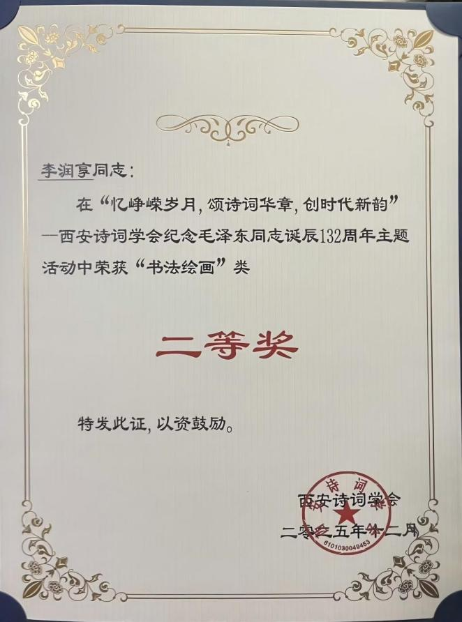 在此次大赛中获奖的24级书法学本科3班学生李润享表示,通过此次活动,不仅提升了自己的专业创作水平,也读懂了毛泽东诗词背后的历史逻辑与精神密码,更在思政课理论学习中,明白了书法艺术既要“师古”更要“颂今”,既要追求笔墨之美,更要彰显时代之魂,我们要以此次活动为契机,从伟人思想中汲取奋进力量,让红色薪火代代相传。