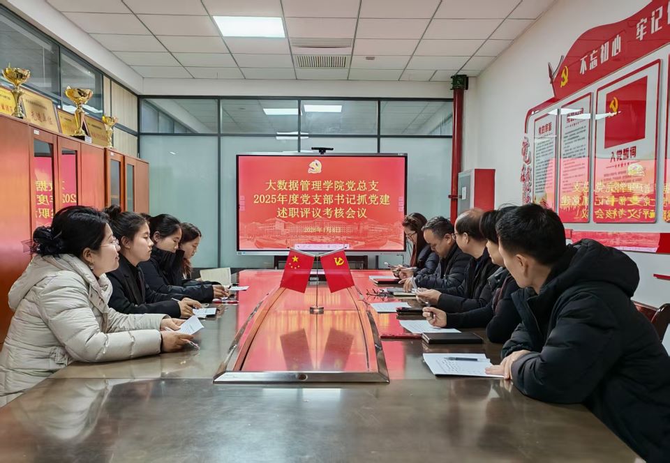 为深入贯彻落实新时代党的建设总要求和新时代党的组织路线,严格落实学校党委关于基层党支部书记履行党建工作责任述职评议考核的部署要求,进一步夯实基层党组织战斗堡垒,激发党员先锋模范作用,2026年1月4日,大数据管理学院党总支在综合楼305会议室召开2025年度党支部书记抓党建述职评议考核会议。学院党总支委员组成考核工作组,各党支部书记悉数参会。会议由学院专职组织员王卫冬主持。