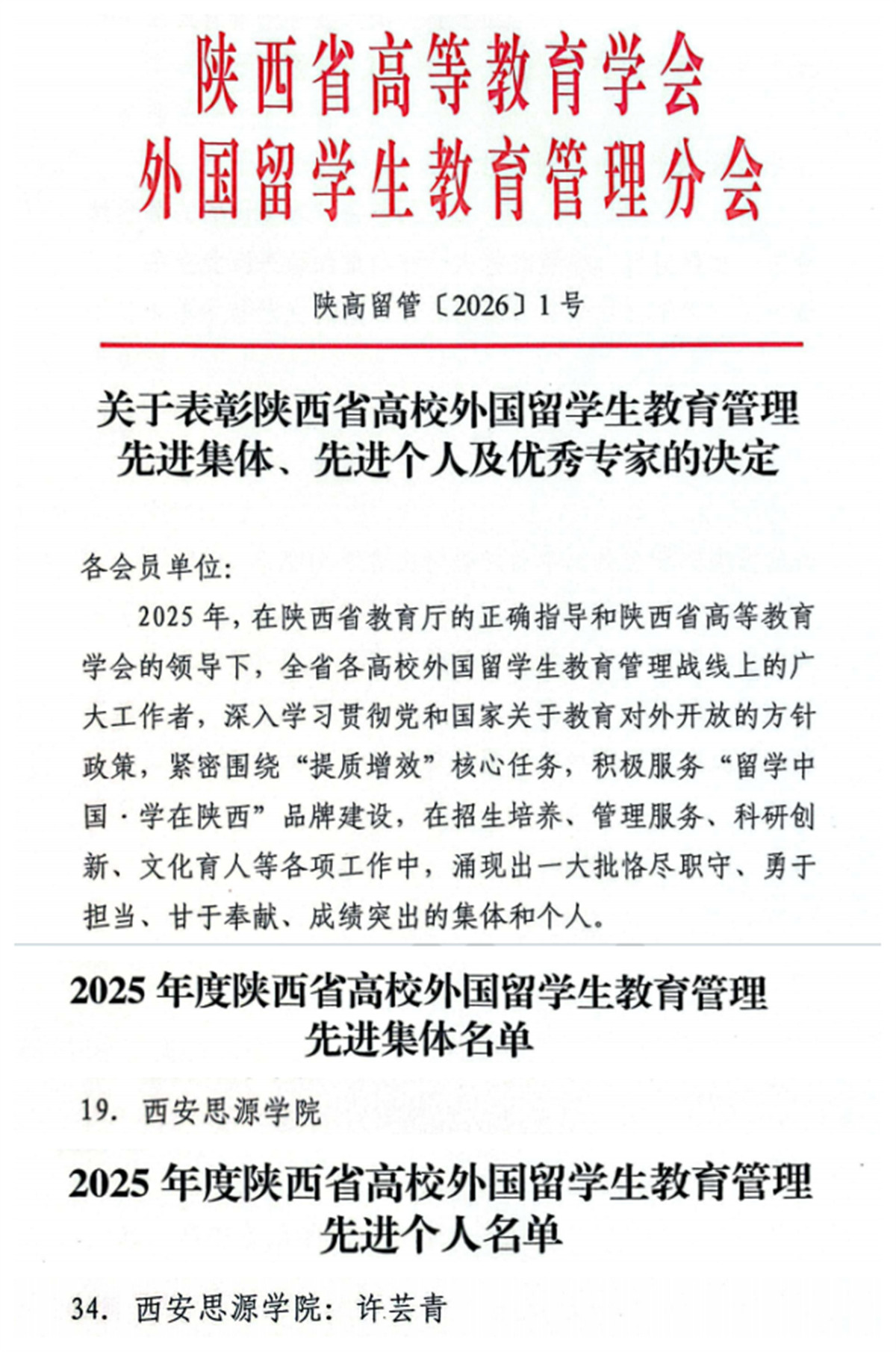 提质赋能育英才,载誉前行启新程——西安思源学院荣膺陕西省来华留学教育管理两项殊荣