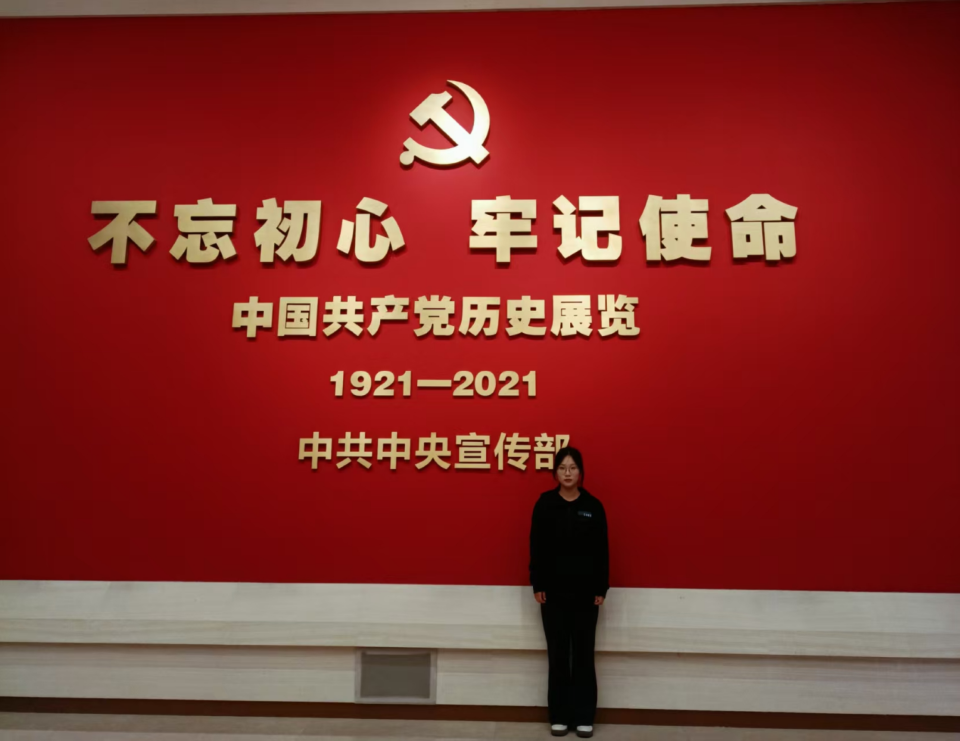 在展览馆内,该同学跟随讲解员的引导,沿着历史脉络依次参观各个展厅。在“建立中国共产党 夺取新民主主义革命伟大胜利”展区,泛黄的史料与珍贵的文物将她带回那个风雨如晦的年代,先辈们为救亡图存舍生忘死的壮举,让她深刻理解了“为中国人民谋幸福、为中华民族谋复兴”的初心分量。